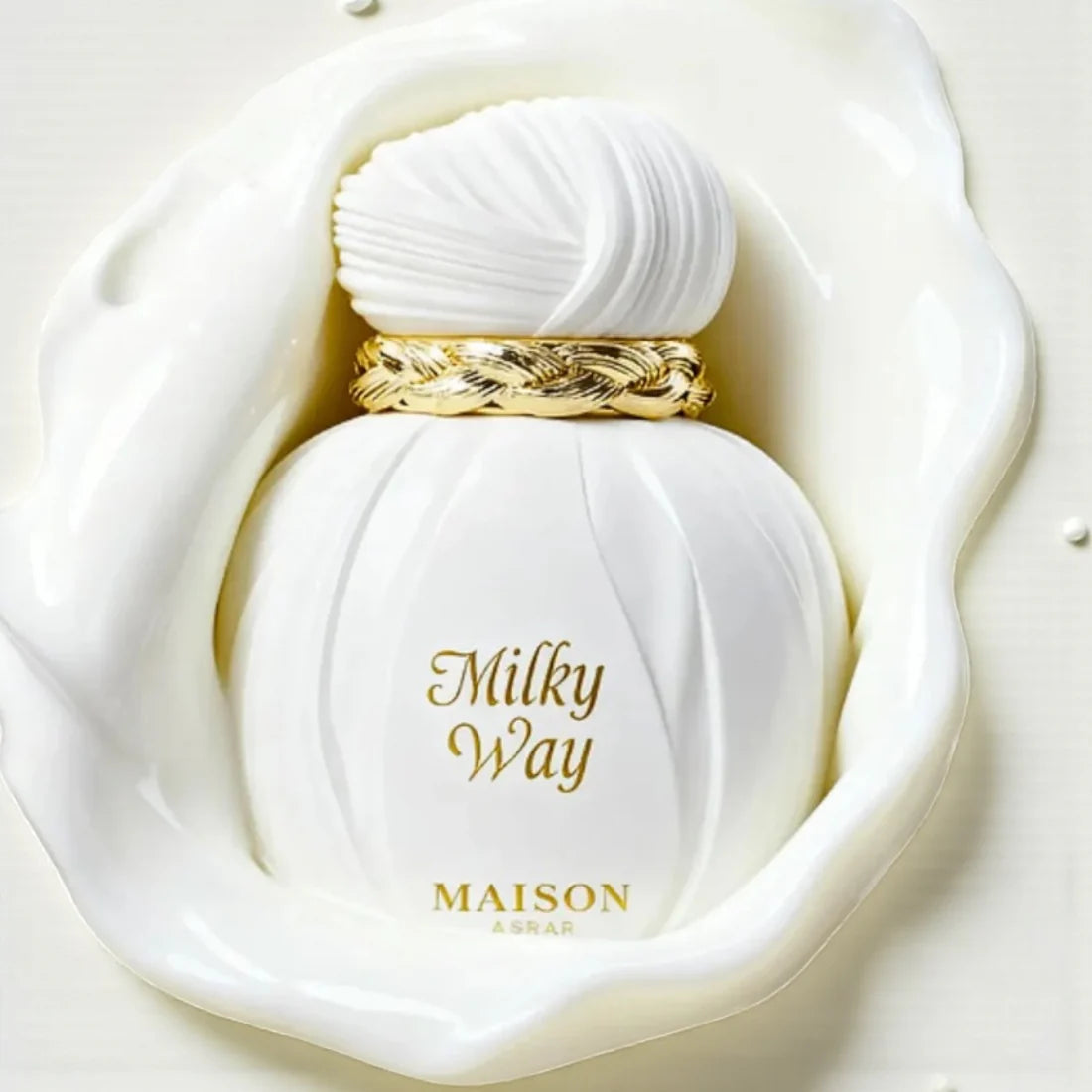 PROFUMO ARABO MILKY WAY MAISON ASRAR Latte, Prugna e Caramello; Iris, Legno di Cashmere, Ylang Ylang e Gelsomino; Sandalo, Vaniglia e Fava Tonka.